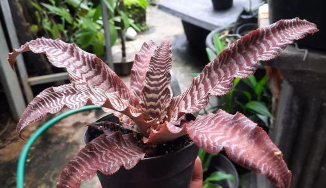 Cryptanthus Fosterianus features elongated brown leaves with subtle variegation. This plant is a versatile option for plant enthusiasts. This off-shade zebra-looked variety tolerates a wide range of lighting conditions and is relatively low-maintenance. Different coloured like cream, and red stripes are the special quality of this cryptanthus.